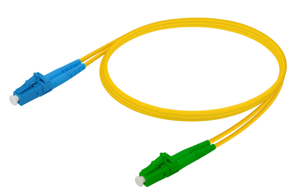 This LC/APC to LC/UPC singlemode duplex fiber optic patch cable is built for precision optical performance across longer distances. Featuring a 9/125μm OS2 fiber core, this cable is optimized for telecom, 5G backhaul, data centers, FTTx, and enterprise-grade private wireless deployments. The green LC/APC connector provides an angled physical contact for ultra-low back reflection, while the blue LC/UPC connector maintains compatibility with standard straight-polish ports.